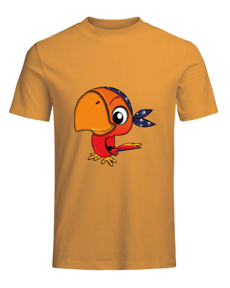 T-shirt imprimé, design  » Perroquet pirate « . Personnalisez la couleur du t-shirt !